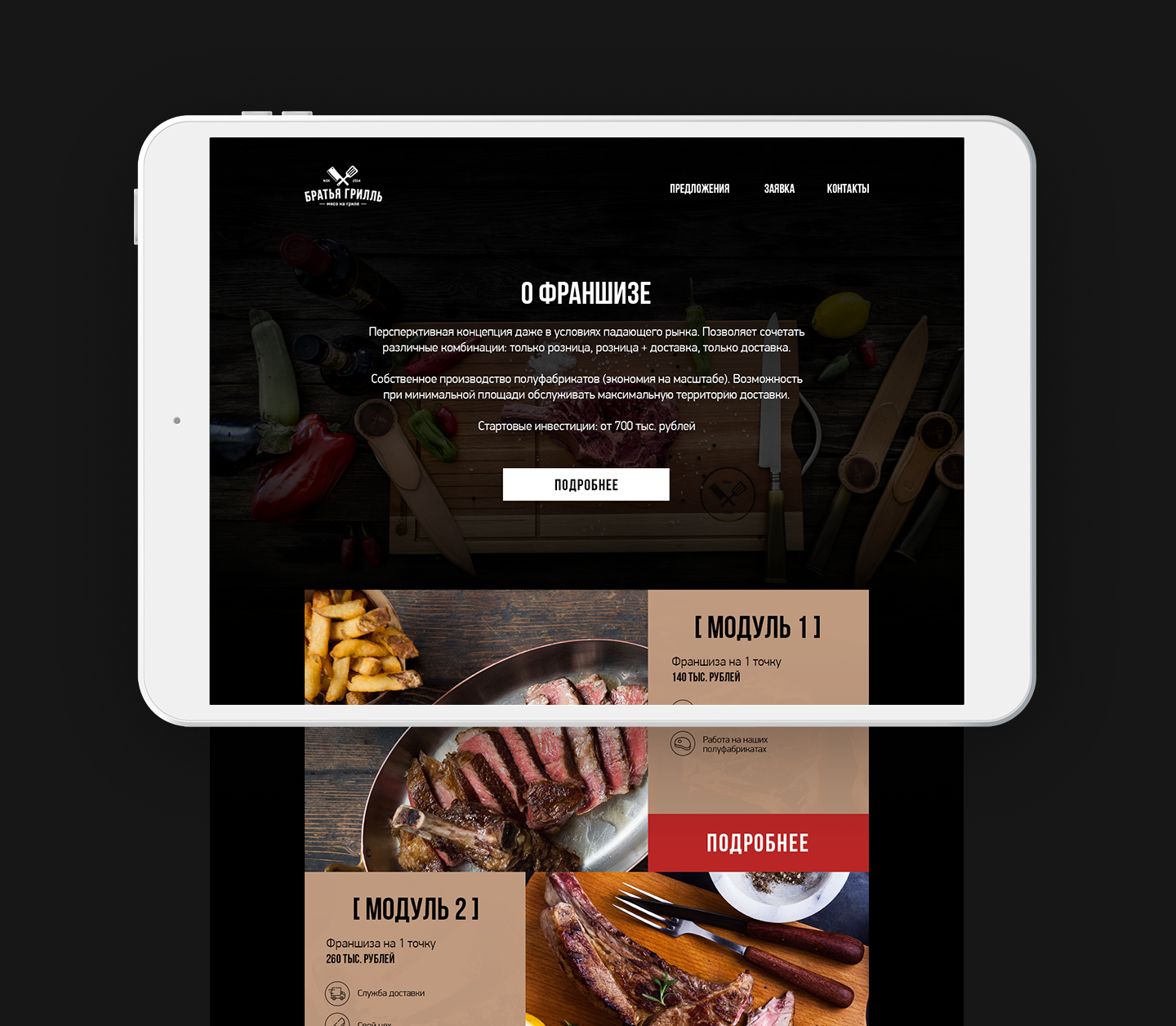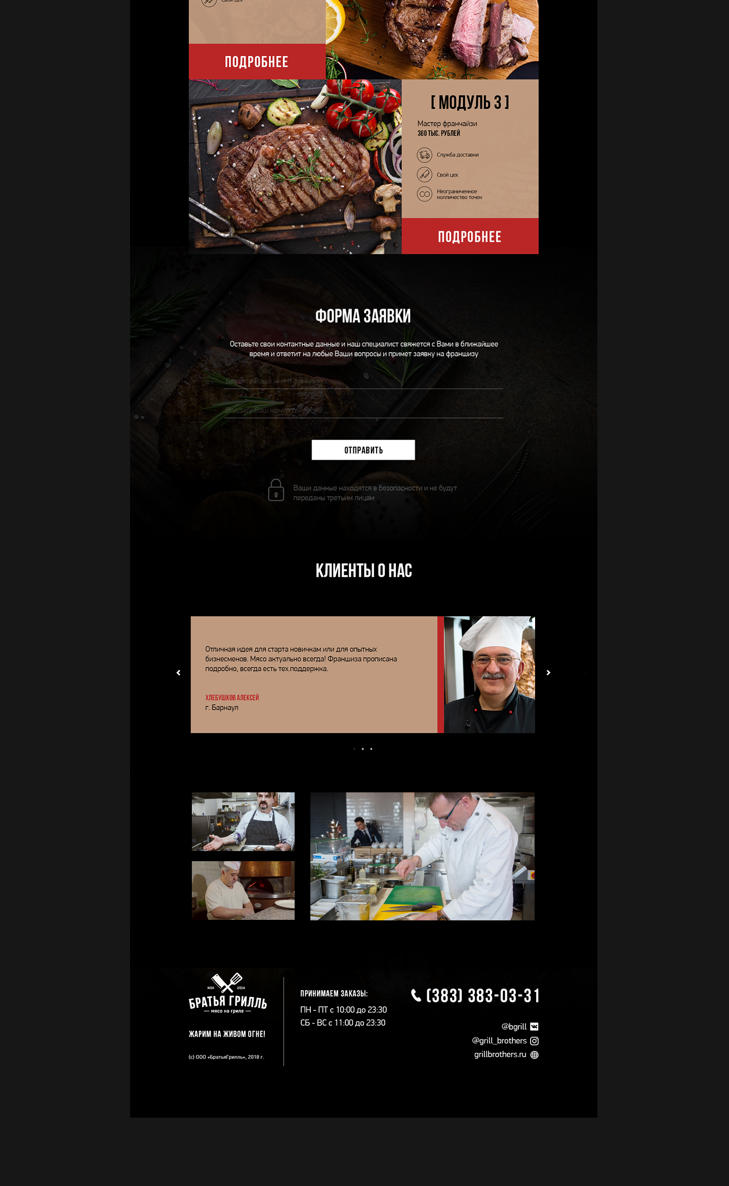 Разработать сайт сети грилльных "Братя Грилль", который бы рассказывал обо всех